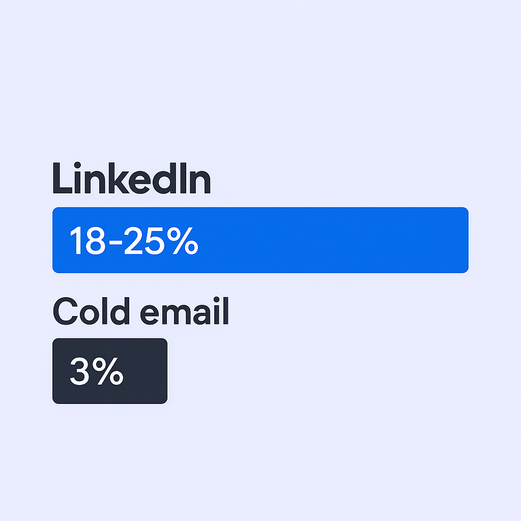 The numbers don’t lie. LinkedIn InMails receive an 18-25% response rate compared to just 3% for cold emails. That’s not a small difference—that’s a massive multiplier on your chances of getting noticed.