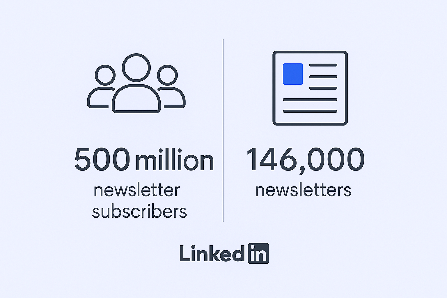 • Only 146,000+ active LinkedIn newsletters – meaning one newsletter for every 6,800+ users, showing market isn’t saturated yet